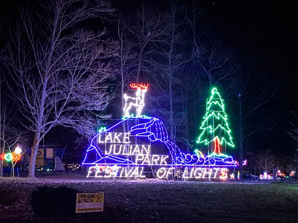 Around Christmastime, Lake Julian has a small holiday light drive-thru display – a fantastic activity if you are visiting Asheville with kids.